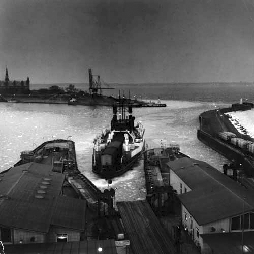 Ferry from Helsingør (Elsinore), Denmark to Helsingborg, Sweden. 1954