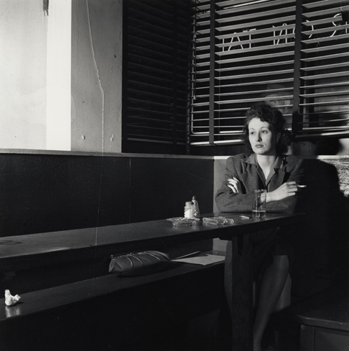 Girl sitting alone in the Sea Grill, a bar and restaurant, waiting for a pickup. Washington, D.C. 1943